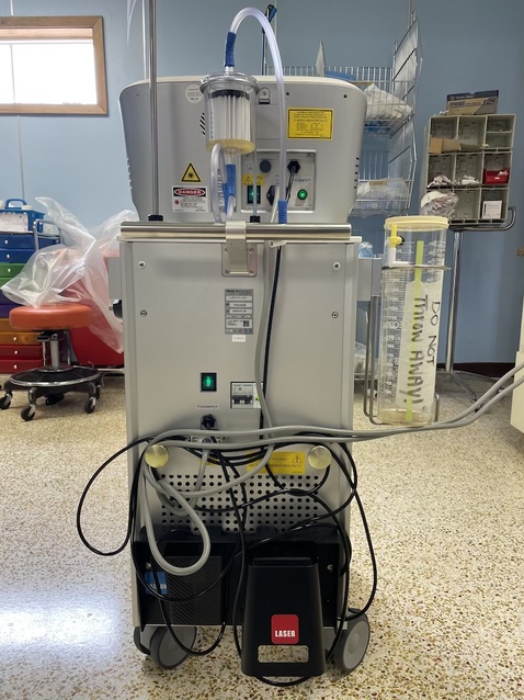 Simultaneous Lasing and Suction: 1470 nm diode device, AngelTM radial emission lasing fibers in various diameters, vibrating device and cable, LipoSenseTM temperature control cannula and multi-use LipoTight fiber, including stripping and cleaving set. Sterile Fat Grafting Kit: micro-cannulas, precision needles in various diameters, anaerobic transfer, sterile canister for viable fat collection, and multiple syringe stand.