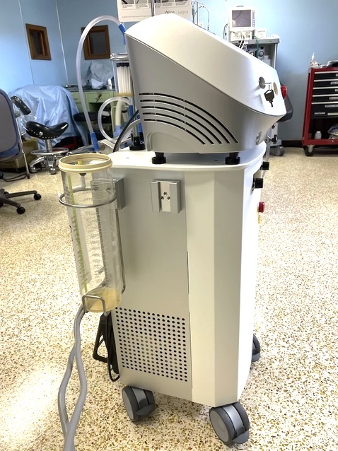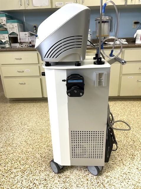 All of the required tools and equipment as well as a complete set of accessories are conveniently organized in a quiet, portable plug-and-play unit. Infiltration and Suctioning Modality: peristaltic pump for infiltration, aspiration pump for suctioning, and suction cannulas for face and body. Also provides all required accessories including a canister for waste fluid collection and a full kit including all required sterile tubing and disposable waste bags.
