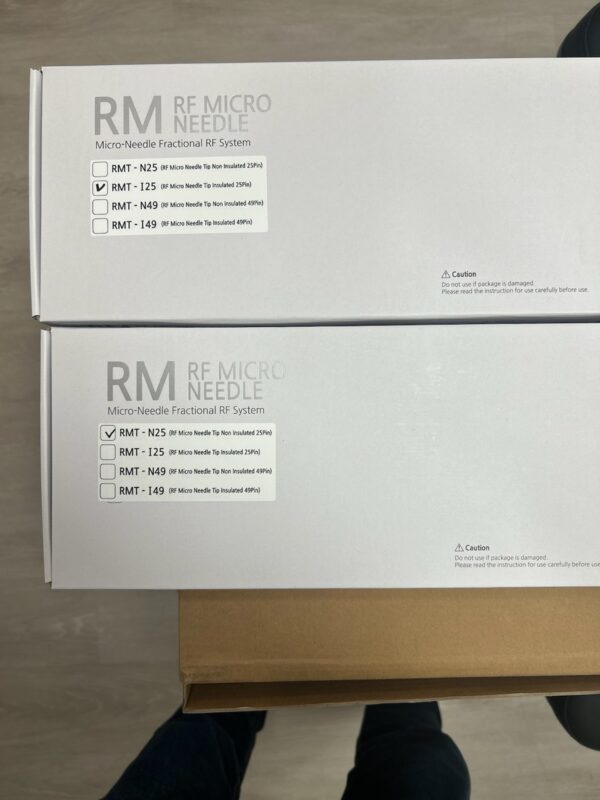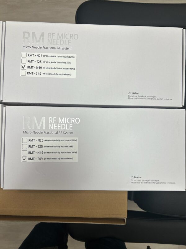 Each insulated and non-insulated needle type has 2000 shots and it is effective in treatments such as resurfacing, acne scar, hypertrophy, stretch mark, and tightening. Needles are adjustable from depth 0.5mm to 3.5mm, and provide insulated and non-insulated needle effect.