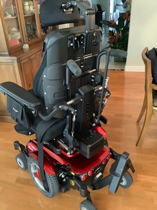 The wheelchair consists of a chassis and a seat. The chassis contains the wheelchair’s electronics, power supply and drive functions. The seat consists of a seat frame, seat plate/back rest, arm rest/leg rest, seat lift/fixed seat tube and any accessories/options such as a head rest, calf rest, chest support, etc.